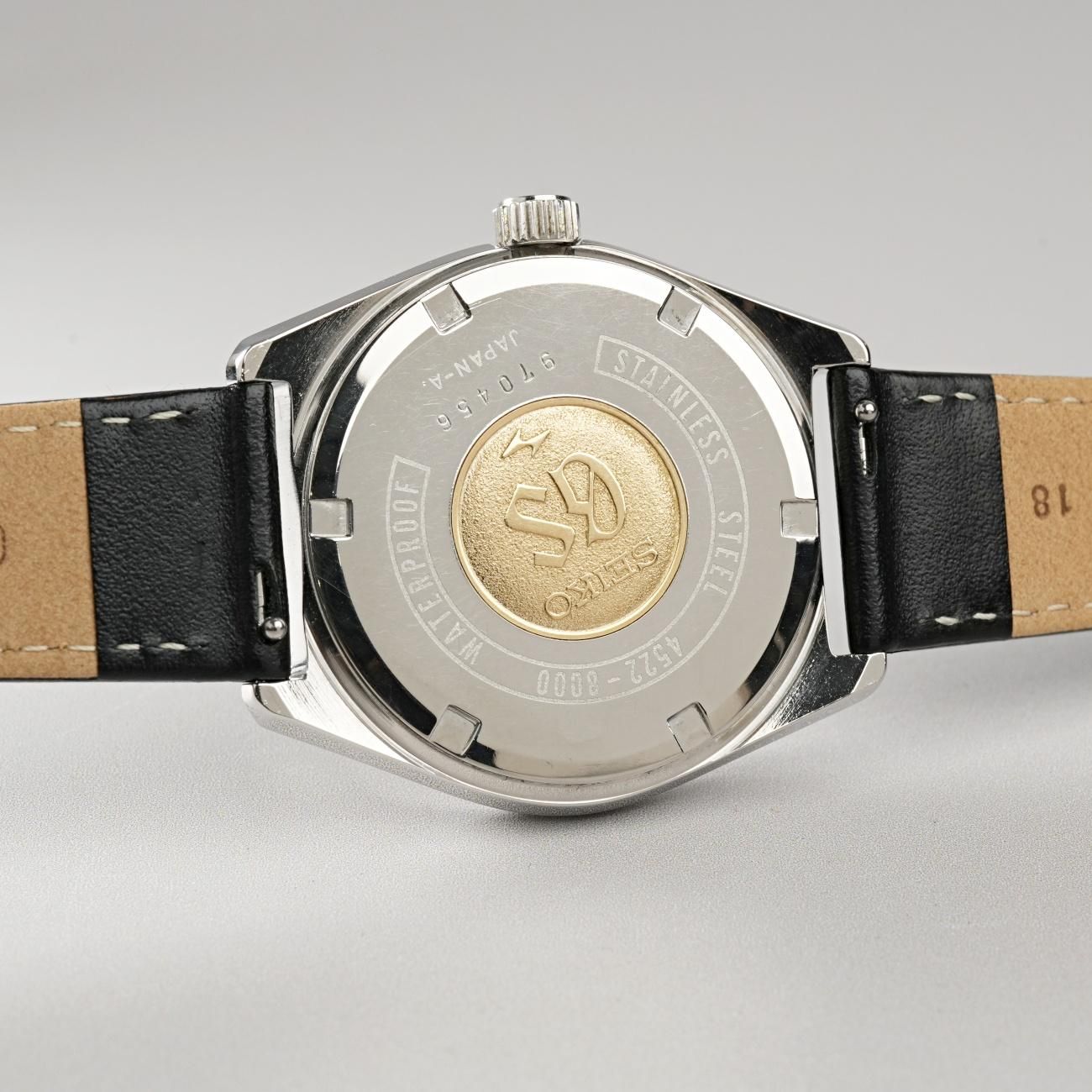 ケースの「8000」番は代表的な「GSデザイン」で、服部時計店初の大卒デザイナーであった田中太郎氏が手掛けた「セイコースタイル」といわれる時計デザインの方程式を最も具現化したのがこのケースといわれています。