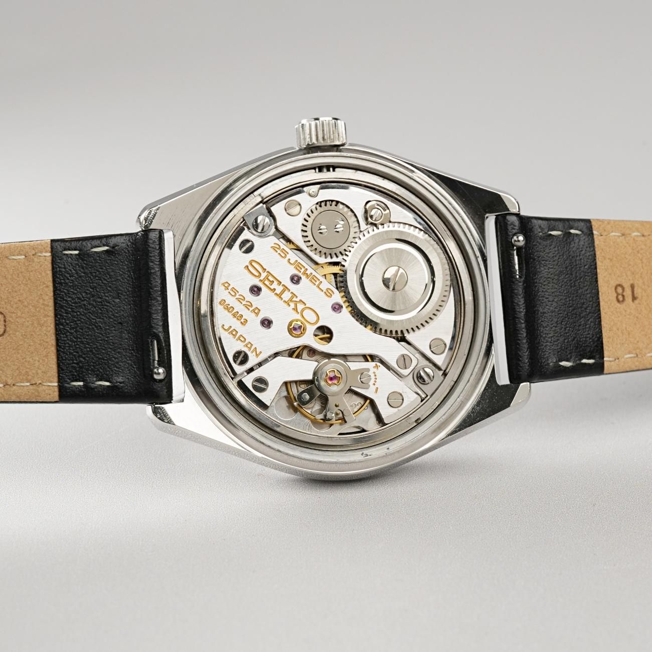「歴代セイコー機械式腕時計の最高傑作」と絶賛される、36000振動のハイビート手巻き25石ムーブメント、Cal.4522Aを搭載。