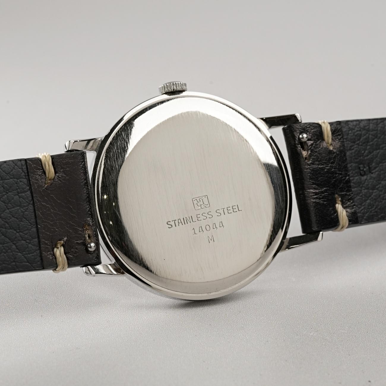 この「鶴マーク」も晩年は防水ケースが当たり前の時代ですので裏蓋の表面ではなく、裏側にこっそりと刻印されていました。