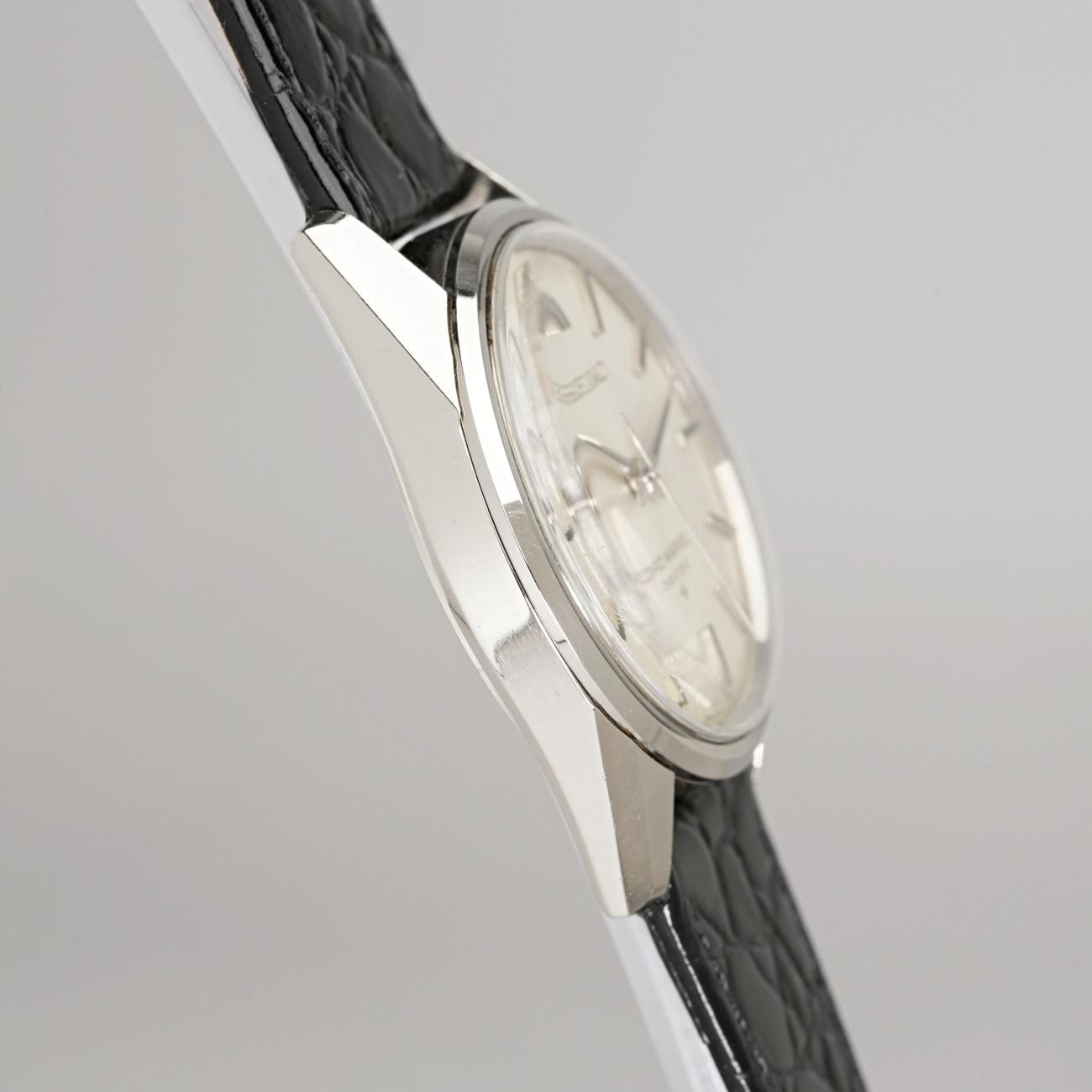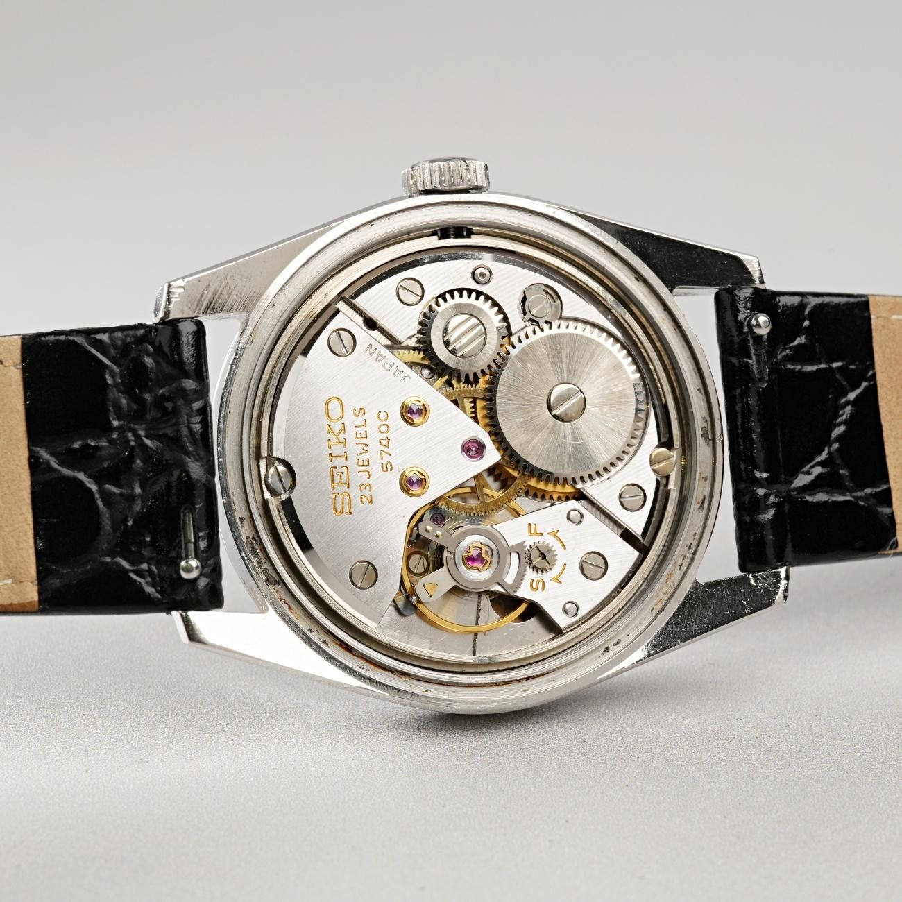 Cal. 5740C (36000振動/時): このモデルに搭載された手巻きムーブメントは、当時としては驚異的な1秒間に10回テンプが振動する**ハイビート(高振動)**仕様でした。これは、現在のグランドセイコーにも受け継がれる高精度への挑戦の始まりを示す、極めて重要なムーブメントです。