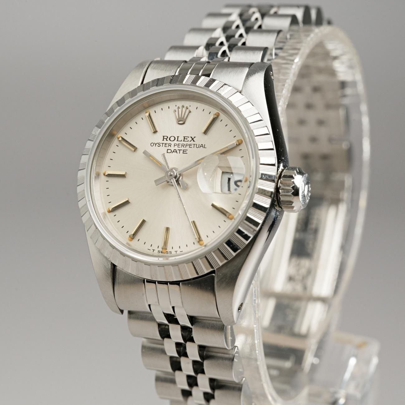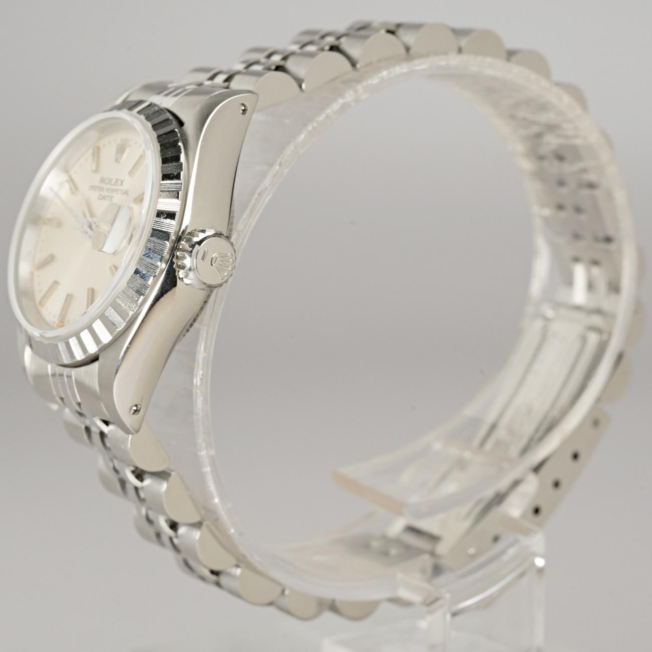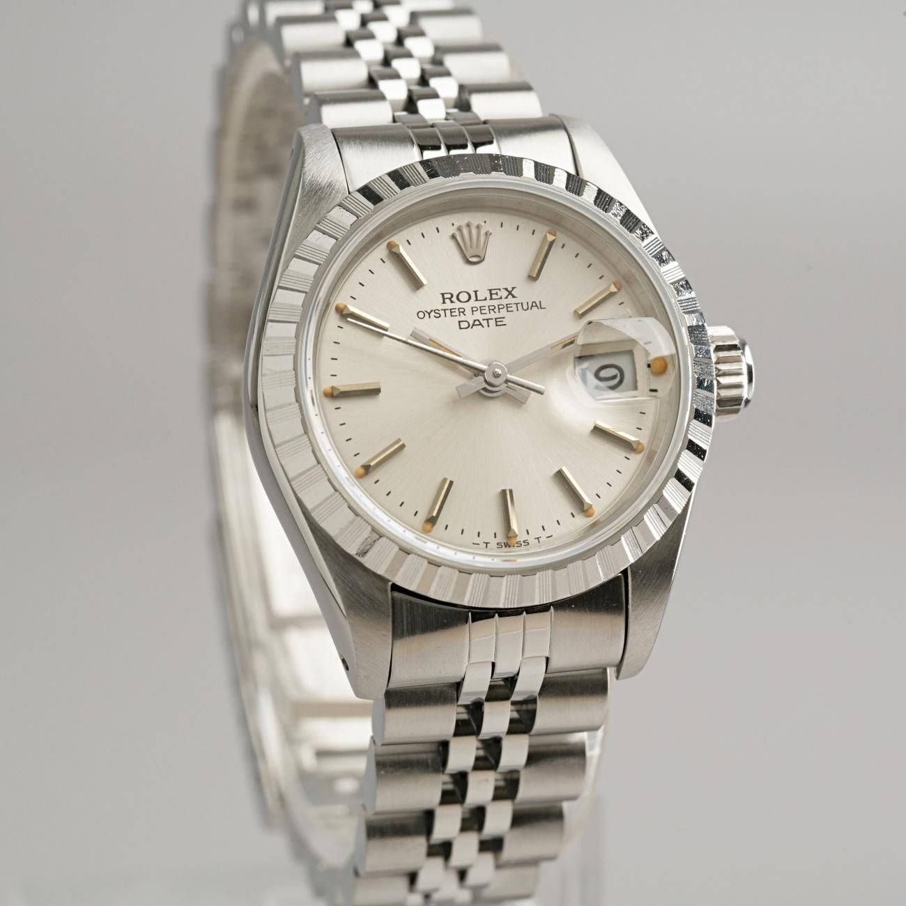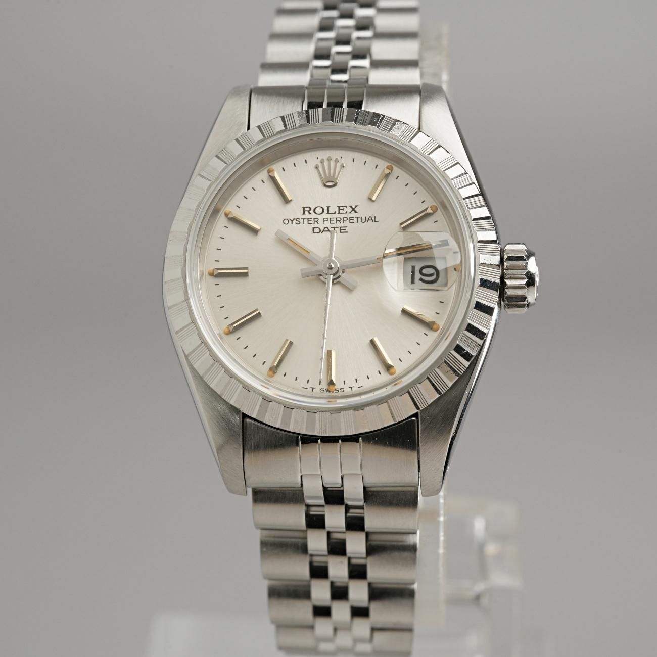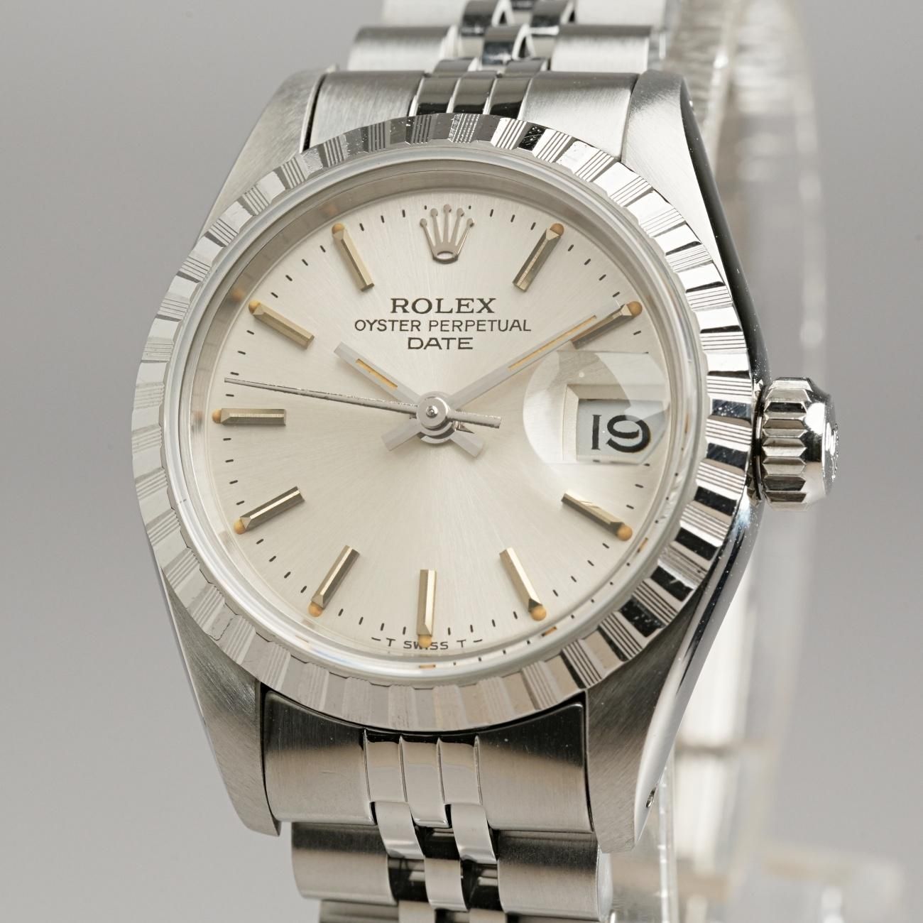 Rolex Oyster Perpetual Date 69240 Ladies Engine-Turned Bezel Stainless Steel 1984 Post-Vintage (Serviced)