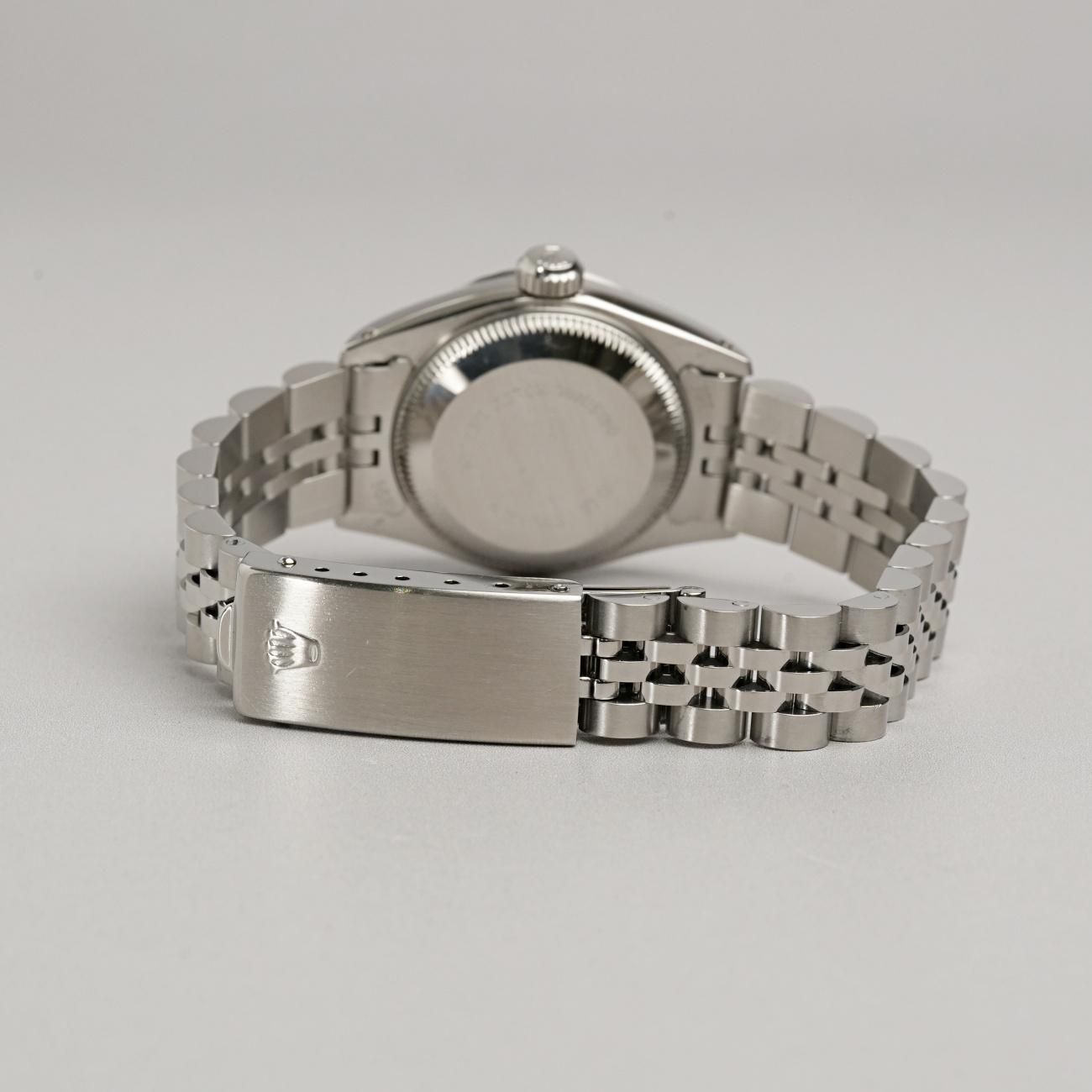 ロレックスの定番的なレディースウォッチとして人気があり、ビジネスからカジュアルまで幅広いシーンで使えるシンプルなデザインです。