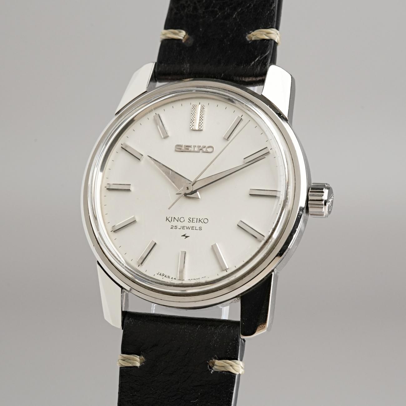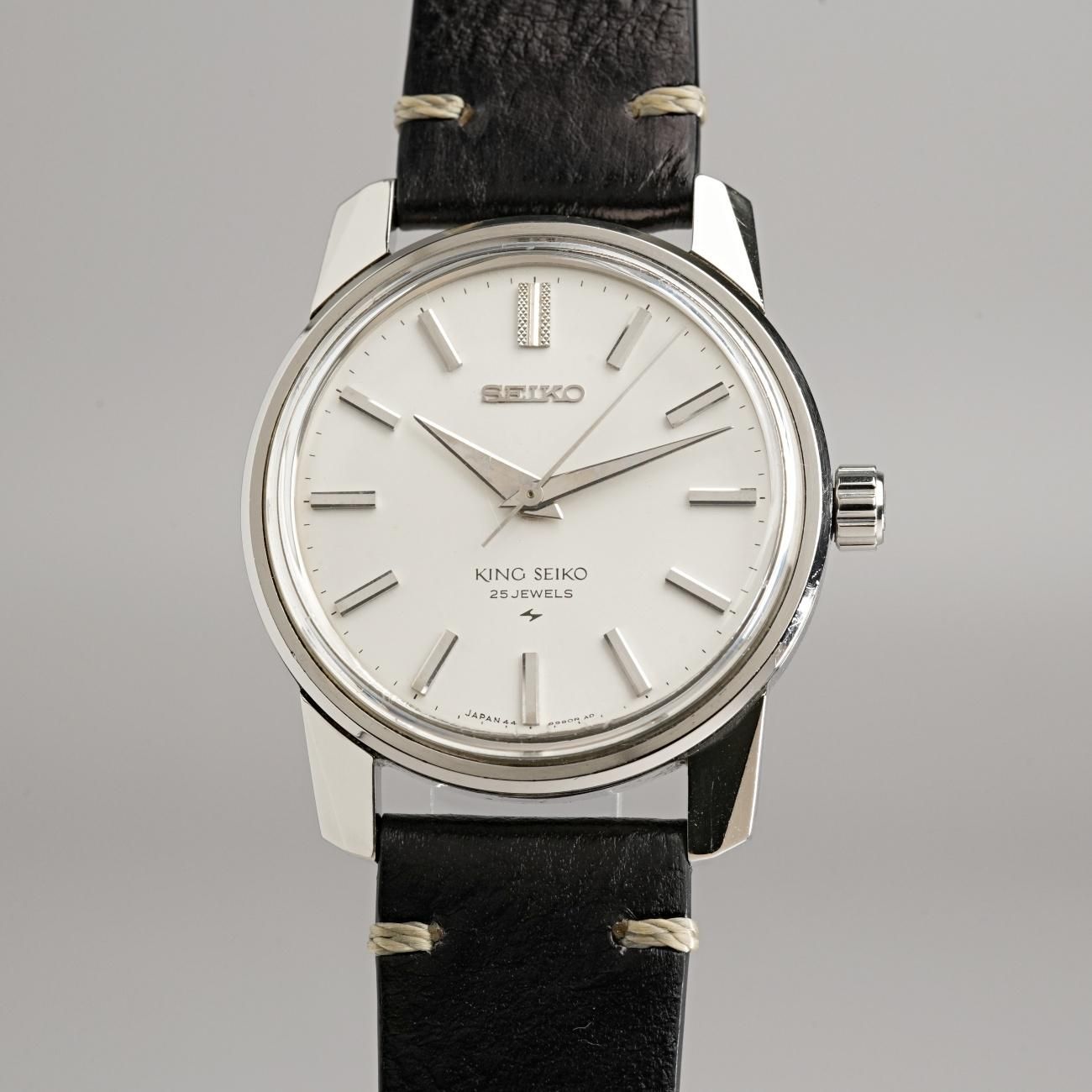 亀戸(第ニ精工舎)初の1958年から製造された男性用腕時計「クロノス」の系譜に乗る「キングセイコー」です。