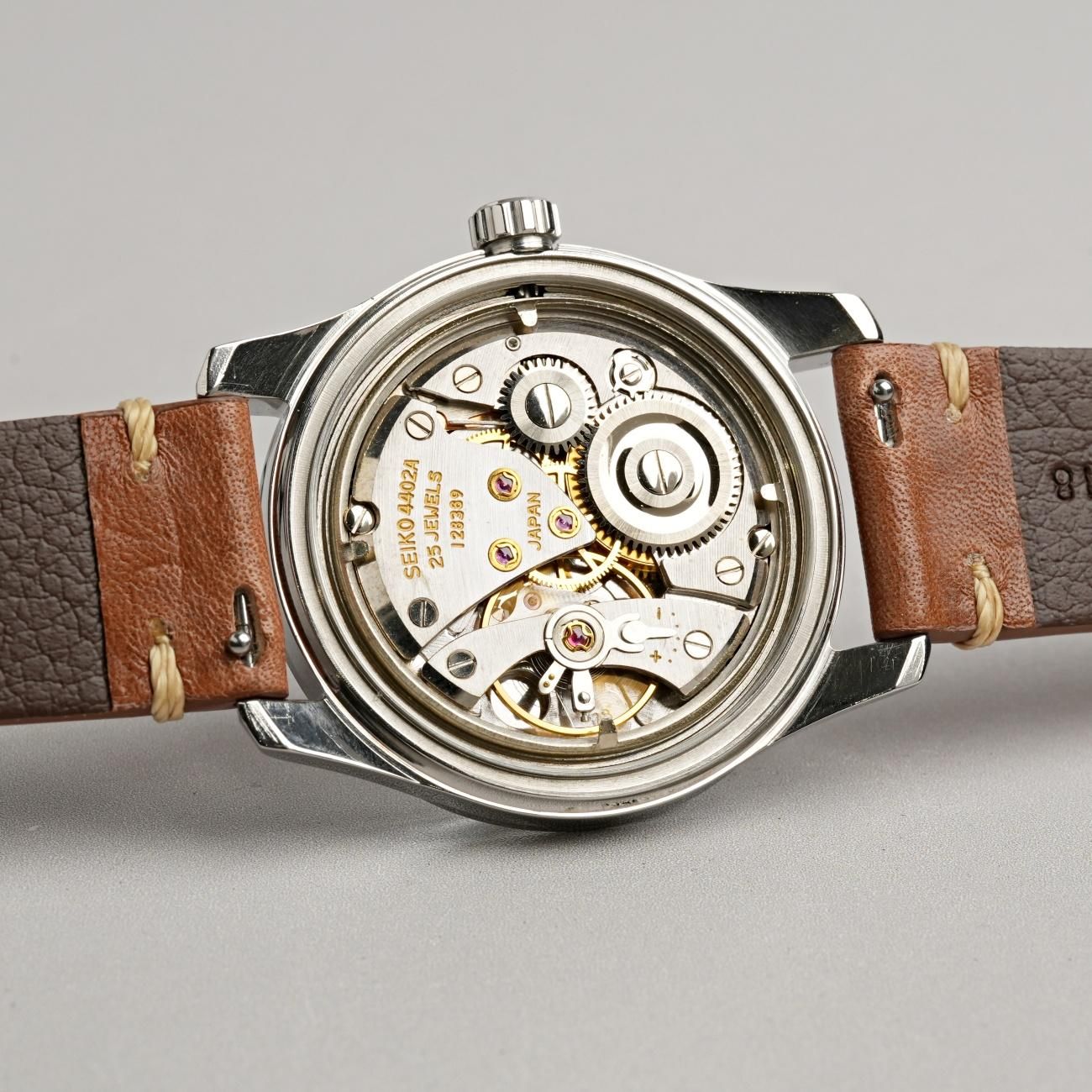 ロービートながら高い精度と安定性を誇った44系ムーブメントを搭載。