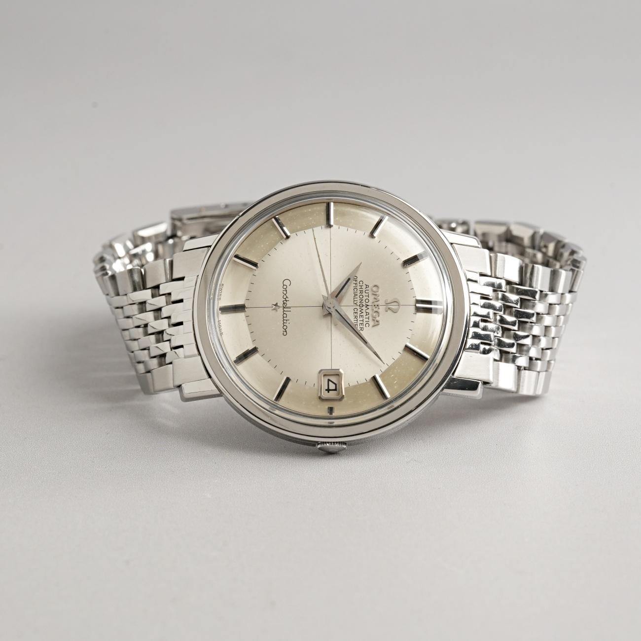 コンステレーションらしい上品なケースラインと、シルバーダイヤルが静かに品格を漂わせるモデルです。