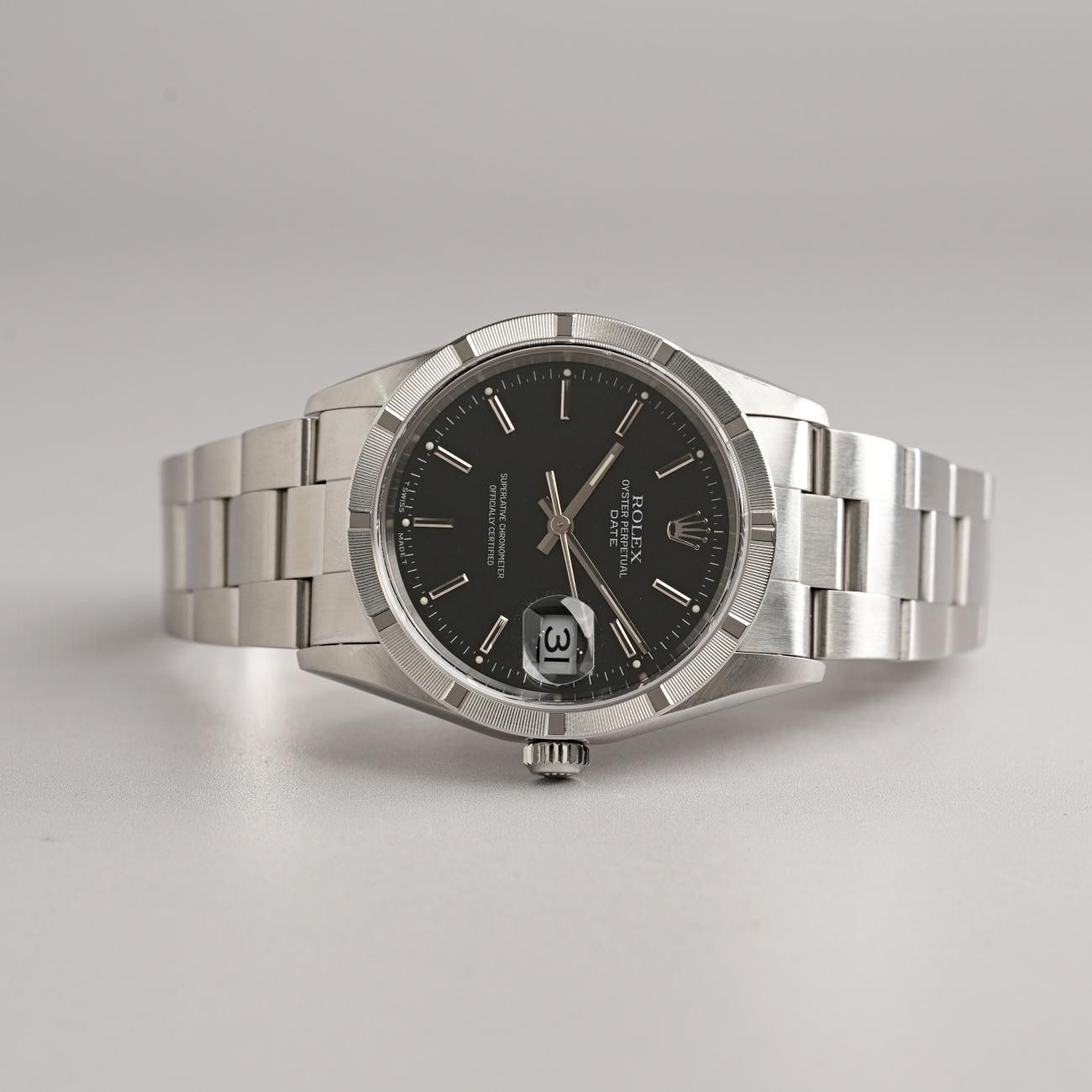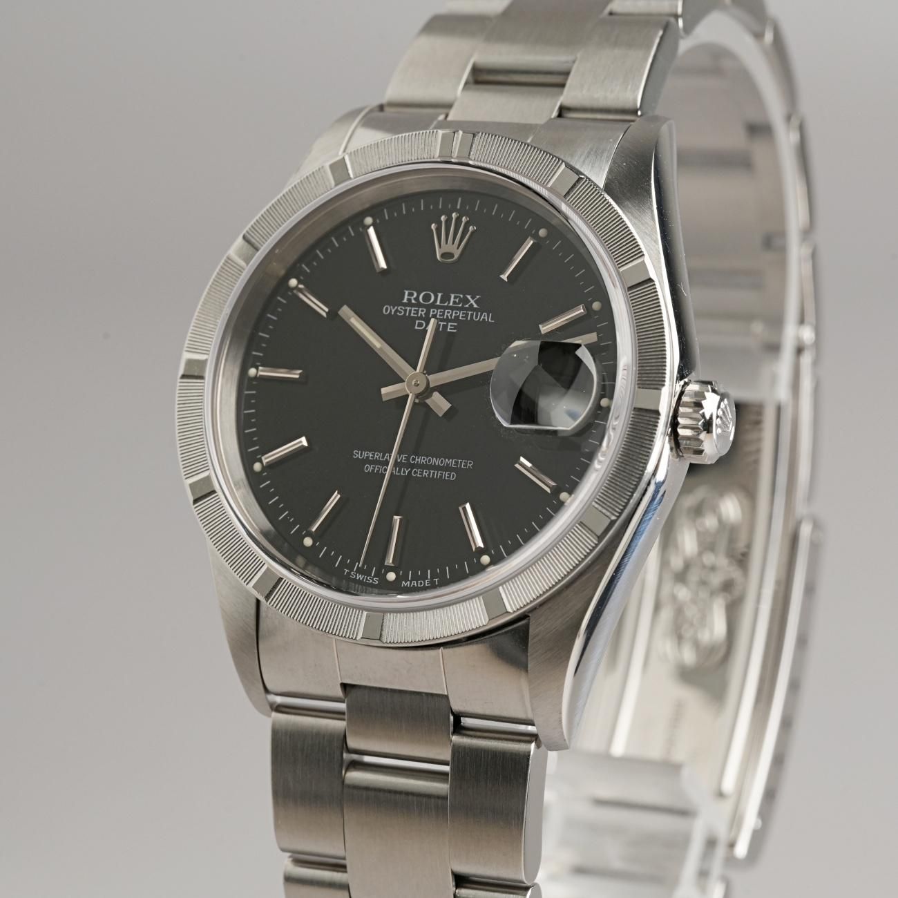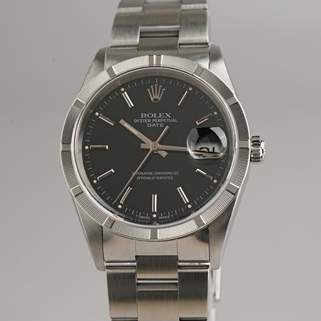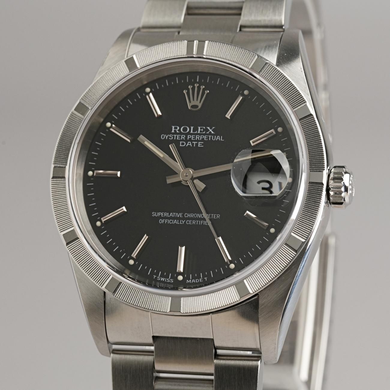 1997 Rolex Oyster Perpetual Date 15200 U-Serial, Black Dial, Engine-Turned Bezel, Automatic, Overhauled (Post-Vintage)
